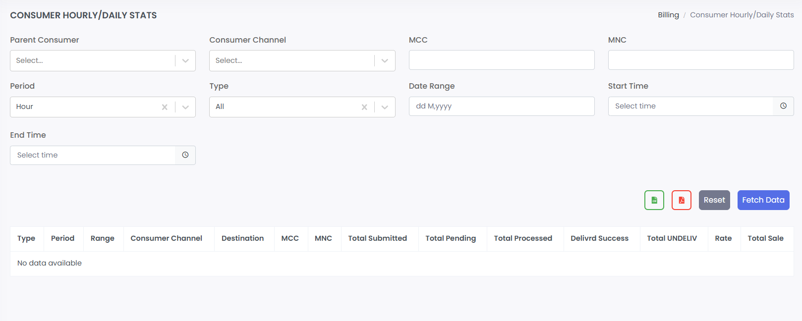 Location: Sidebar → Billing → Consumer Stats