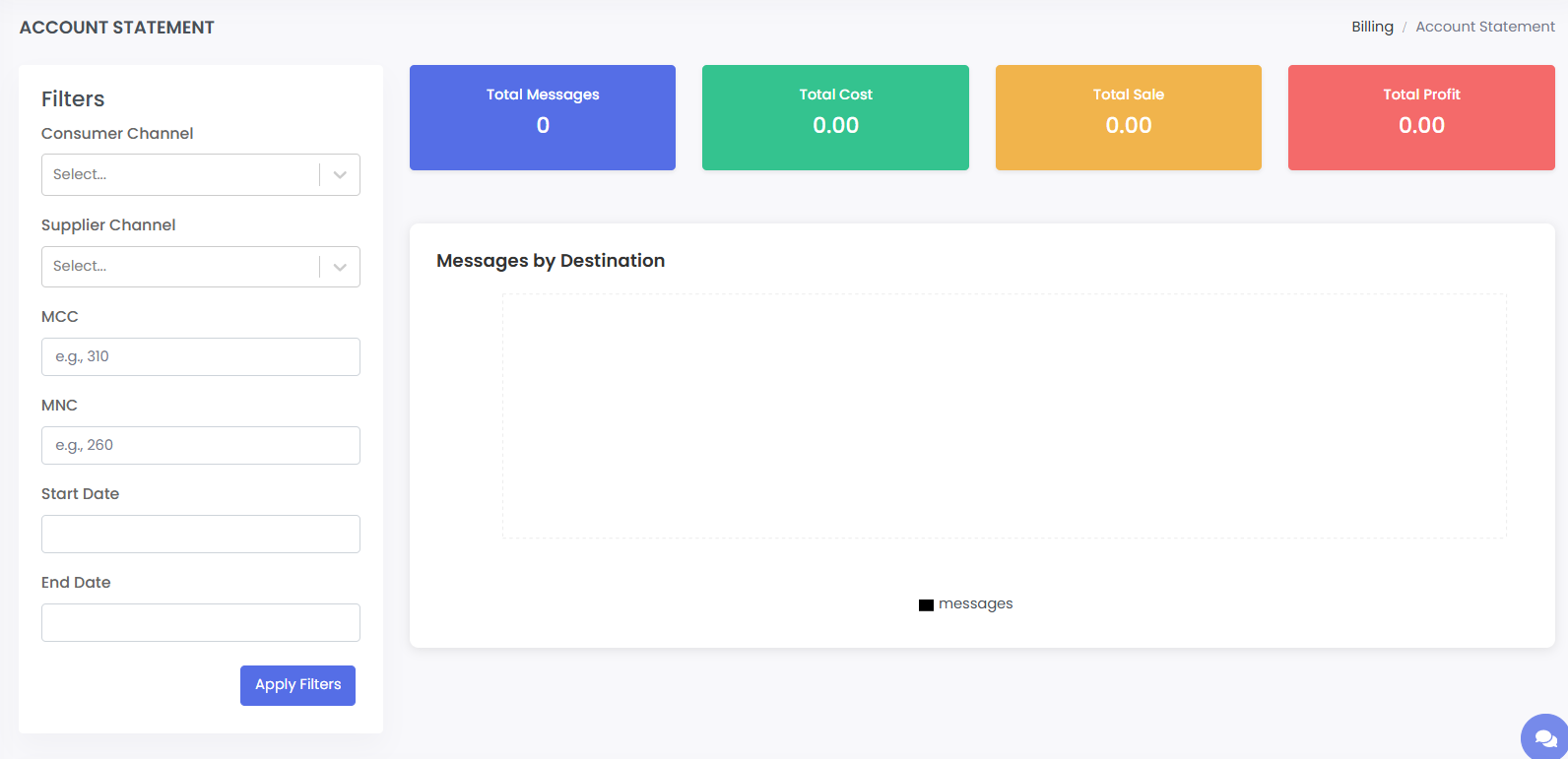 · Visual or tabular breakdown of messages per destination/region.