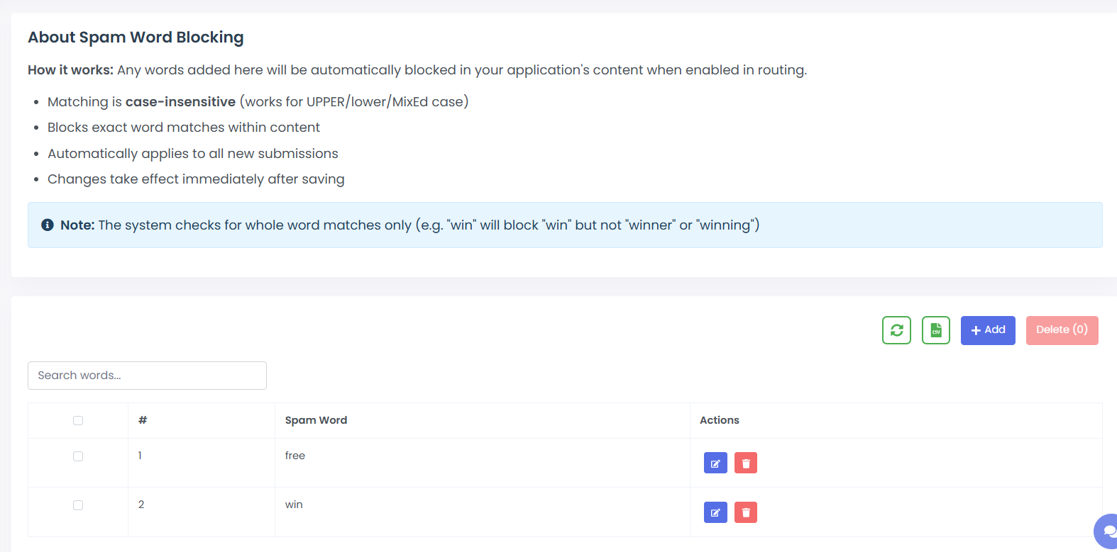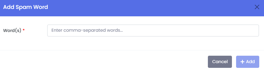 · Form to add new spam words.