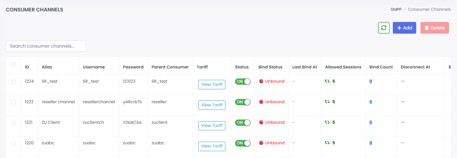 Location: Sidebar → SMPP Channels → Consumer Channel